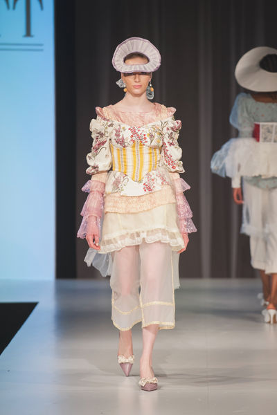Eve Van Scott’s costume collection resurrects Shakespeare’s classic tale of “A Midsummer Night’s Dream”. The collection exists in a fantastical time period of its own fusing present day fashion with that of seventeenth, eighteenth, nineteenth century France. Using a multitude of vintage prints, textures, and manipulation techniques each garment evokes pure individuality redefining the characters of Lysander, Hermia, Helena, and Demetrius. Each silhouette strengthens and complements one another elevating the romance and tones of each personality.